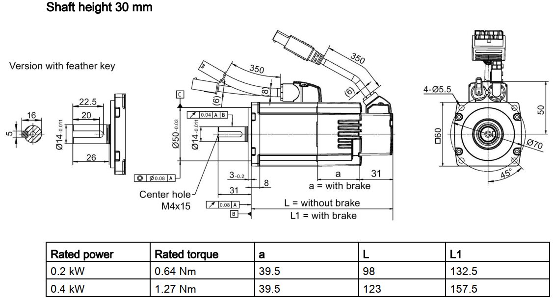 SIMOTICS S-1FL6 230V 3-pha AC, Pn=0.4kW, Nn=3000rpm, Mn=1.27Nm, chiều cao trục 30 mm,encoder tương đối TTL 2500xung/vòng, IP65.